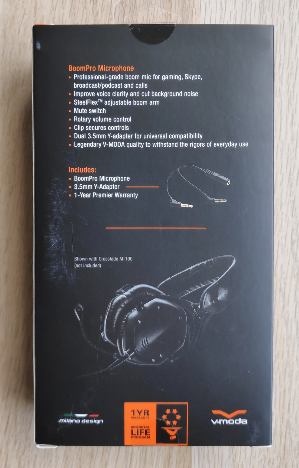 The Crossfade 2 Wireless is no longer sold, but you can check out the Crossfade 3 Wireless page to get an idea. The BoomPro microphone seems to be the same one that’s currently listed on the V-MODA site.
